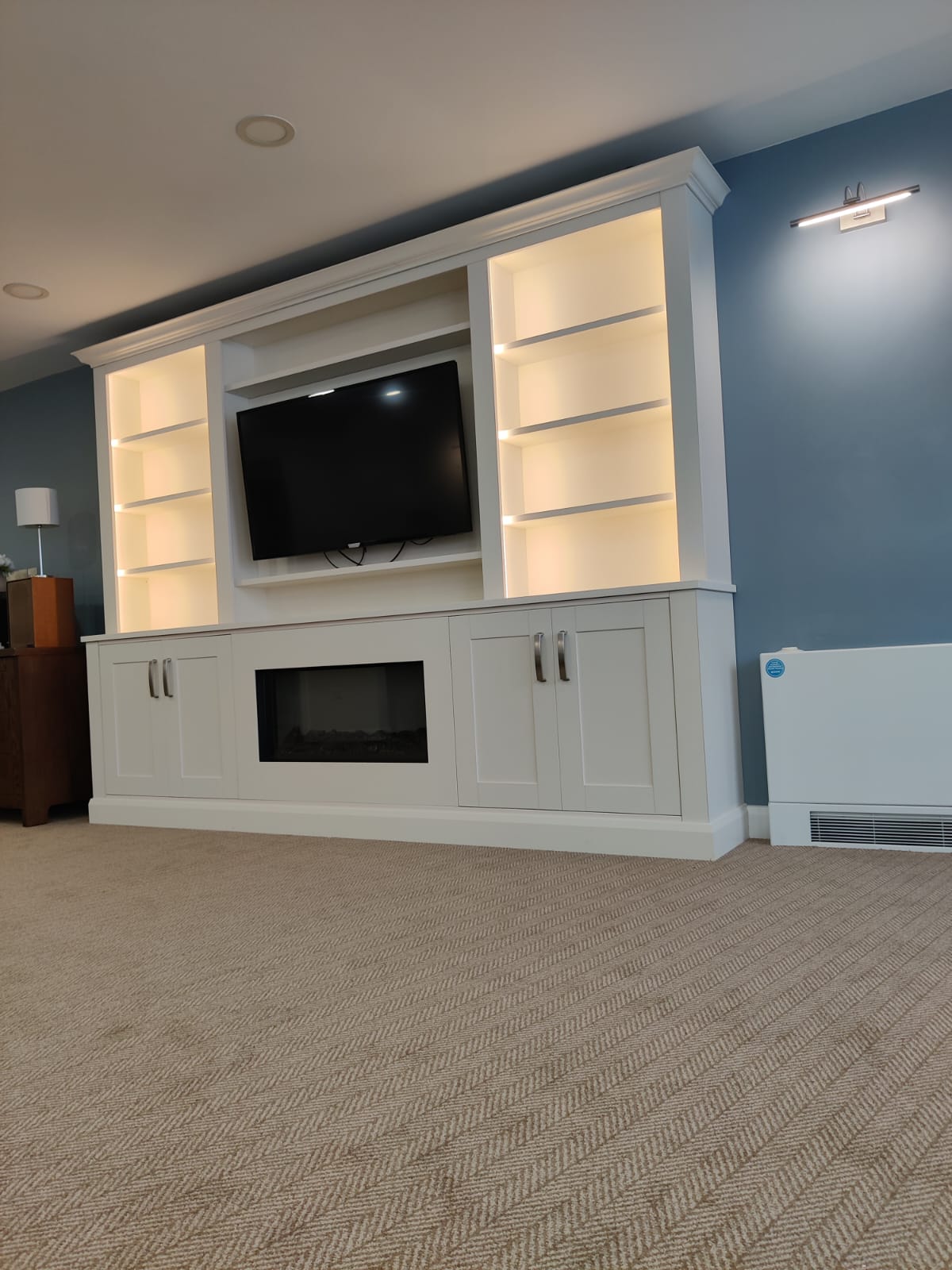 The bookcases were designed as architectural furniture pieces. The units incorporated a central fireplace opening, flanked by full-height shelving and pilastered details. Traditional mouldings were used to add depth and character, helping the furniture sit comfortably within a residential-style interior rather than a clinical setting.