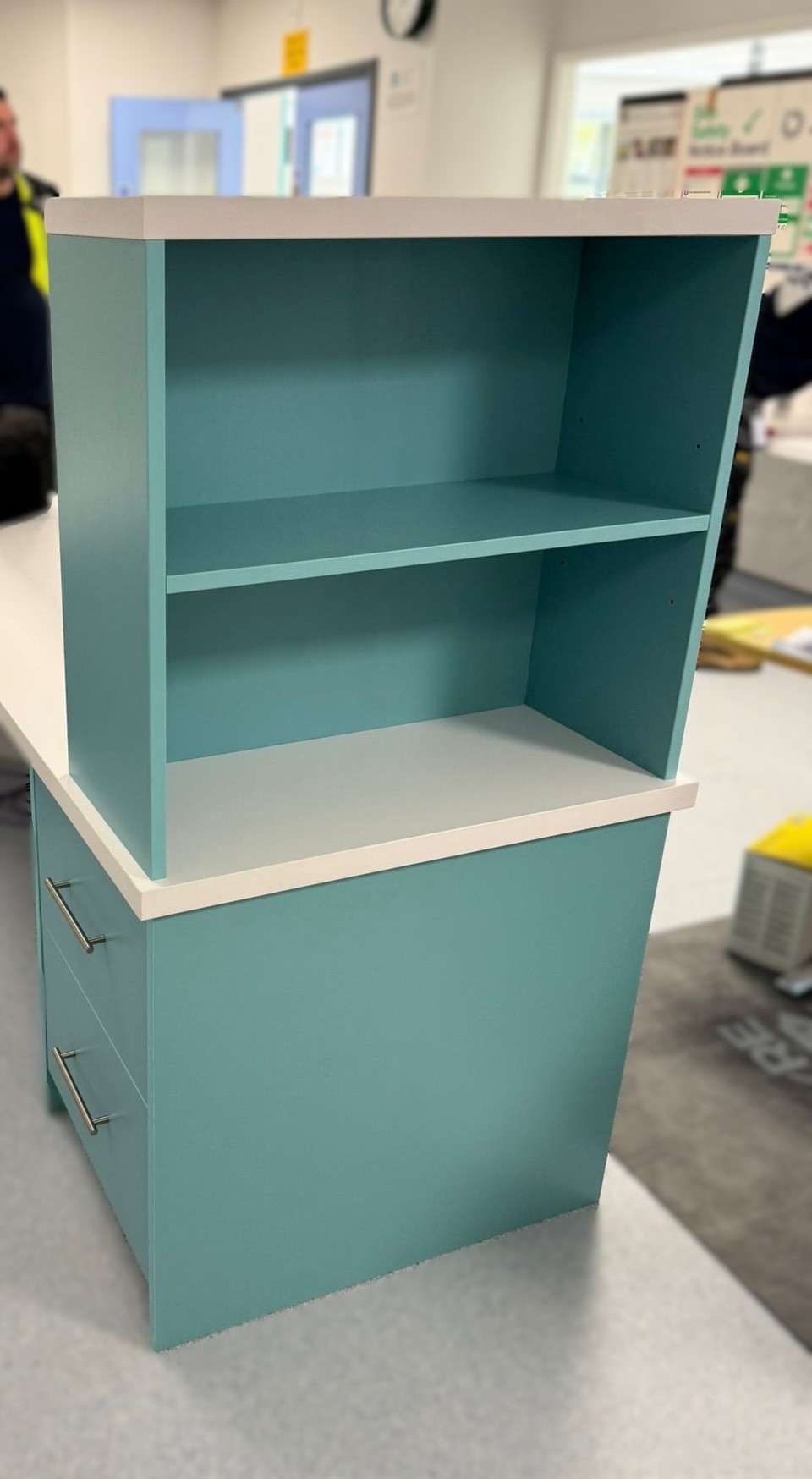 Once the space was ready, the desk was installed on site by our experienced fitting team. The result is a robust and attractive workstation that enhances workflow, provides ample storage, and fits seamlessly into the ward environment.