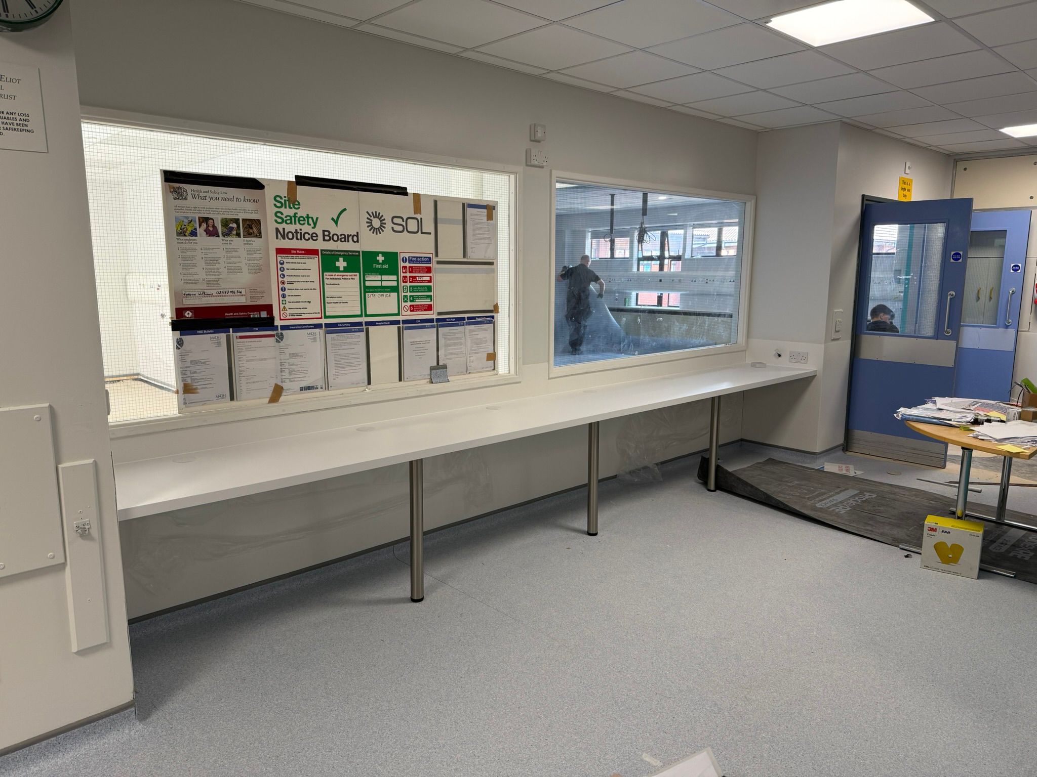 At John F White Ltd Cabinetmakers, we are proud to continue our long-standing partnership with George Eliot Hospital by delivering a fully bespoke nurse base desk for their Elizabeth Ward.